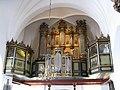 The ornate Baroque organ façade was constructed for the Hartvig Jochum Müller organ in 1749. The organ has been restored and expanded several times, the latest in 1959 by Th. Frobenius & Sons.