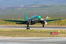 | Douglas C-54 Skymaster | 16 | C-54A, C-54E, C-54G | Formerly used for cargo and aerial firefighting. Retired in favor of using Electras.[26] As of February 2018 eleven were listed for sale by Buffalo.[27] |