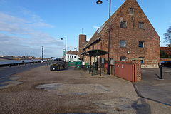 Marriott's Warehouse, was originally an old Tudor Warehouse built on the quayside late in the Elizabethan Era (1533–1603). Thomas Clayborne funded its construction. It was used to store corn from visiting ships, and is believed to have been constructed with robbed out materials taken from monastic properties confiscated by the crown during the Dissolution of the Monasteries in the reign of Henry VIII of England (1491–1547). Restored in the early 2000s as The Green Quay the building has now reverted to its original name. It is now used as an educational facility, with exhibits about The Wash, The Fens and local heritage on the upper floors, while the ground floor has become a popular restaurant.[33]