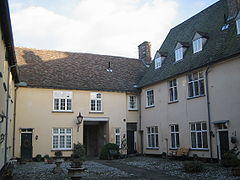 These almshouses are of 13th-century origin. Until comparatively recent times they were known as Gaywood Hospital. They were destroyed in the Siege of Lynn in 1643, and rebuilt in 1649. The eight almshouses are arranged around a courtyard. They were restored in 1904, with further modernisation in 1965. There is a well-known painting by Sir George Clausen (1852 – 1944) of these almshouses from 1881.[46]