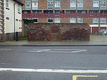 The South Gate (52°44′45″N 0°24′05″E / 52.7457°N 0.4015°E) is one of the most recognisable structures in King's Lynn, as most visitors to the town still have to pass through it. Originally constructed in the 14th century, it was rebuilt in the 1450s, much in the form that is seen today. However the ashlar front, which gives the building a much more imposing impression, is merely a facade which was added in 1520; the structure itself is actually bricks and mortar, which given the date of construction makes it one of the oldest surviving brick structures in the country. It is a Grade I listed building.[11]