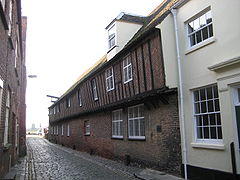 This pub (originally a 15thC town house) situated in Chapel Street, not far from the Tuesday Market Place, uses the name acquired in 1714, when this ancient building first became an inn. Previously, it had been used for centuries by the clerks of the nearby Chapel of St Nicholas. The growth of Lynn, in the 18th century, saw the building of new taverns, as well as the conversion of shops or workshops. The Lattice House is an example of the latter, becoming a public house in 1714. For many years it was called Ye Olde Lattice Inn, until its closure in 1919.[35] It became a public house once again in 1982.