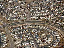 Built environments containing recreational facilities have been associated with greater physical activity among children.[22] For example, one study found that walking paths, parks with playgrounds, swimming areas, basketball courts and other various recreational facilities increased physical activity among adolescent girls.[23] Urban planning and its utilization of mixed use development are key factors affecting childhood obesity. Mixed use spaces are composed of residential, commercial, cultural, and institutional components.[24] This type of development helps to reduce the distance residents have to travel to access a grocery store or school. It also creates a more walkable and bike friendly environment for residents. It has been proven that high-density environments, meaning mixed use spaces and neighborhoods with higher walkability and bikeability, will increase physical activity.[25] A multivariable cross-sectional study done by the Harvard School of Public Health examined the association of walkable built environment characteristics with body mass index (BMI) scores among a large sample of children and adolescents.[25] Eight geographic information system variables were used to characterize a walkable built environment. (1) A distance less than 15 km to a private or public recreational open space has been linked to an increase in physical activity among children.[25] This may be due to the influence children have on one another when they see others playing.[25] (2) Also, a higher number of open spaces increases the likelihood of physical activity among children.[25] (3) A more densely populated residential area can increase children's proximity to their peers creating a more walkable environment.[25] (4) Less traffic density can also increase physical activity among children because their parents feel safe when they are walking in the neighborhood.[25] (5-7) Lower neighborhood speed limits with more sidewalks and intersections also create a safer environment for children increasing their likelihood to walk in the neighborhood.[25] (8) Finally, a greater variety of land use mix, or mixed use spaces, result in more children walking.[25] These built environment characteristics that can increase walkability were found to be generally associated with a lower BMI scores among the children sampled.[25] Another study looking at active commuting, those reporting walking, biking, or skateboarding to school more than three times a week, among elementary aged children had significantly lower BMI than non-active commuters.[26] For these reason, mixed use lands within the built environment are imperative to helping address childhood obesity. Urban sprawl, which has been positively associated with increased obesity, and an overall decline in active transportation in recent decades presents a real need for improving health within the built environment.[26][27] High-density environments bring schools, parks, and grocery stores closer to residents making it convenient to potentially eat healthier foods and exercise on a regular basis. Comprehensive urban planning, such as mixed use development, promotes healthier lifestyles in general.