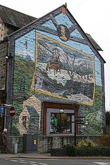 In the centre of the town is a large mural (about 35 feet (11 m) by 30 feet (9.1 m) wide) depicting the final days of Llywelyn ap Gruffydd. The mural shows Llywelyn and his men in a scene depicting the fighting and a representation of Builth Castle, from which Llywelyn was turned away when trying to flee from the English. He was ambushed and killed at Cilmeri, two miles from the town on 11 December 1282.[4]