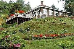 The history of Bukit Larut dates back to the Larut Wars which occurred in 1861 between Chinese underground societies Han San and Ghee Hin over tin mine control in Klian Pauh (predecessor to Taiping), leading to British intervention into Taiping and later The Pangkor Treaty of 1874 which allowed the British administration in Perak.[5] After the treaty was signed, Taiping received Captain Speedy, a British assistant, who was then looking for a way to overlook administration and tin mining from the hilltop. Maxwell Hill was strategically chosen not just as a Taiping observation place, but also as a retreat place for English people near Larut and Taiping. The place was named after George Maxwell, a British Malaya administrator. The first retreat bungalow, "The Cottage", was set up in 1884 for the Resident-General of Perak.[6] The development was followed by the construction of Tempinis Bungalow (formerly Treacher Bungalow) and Cendana Bungalow (formerly The Hut), in 1880 and 1889, to accommodate visitors of Maxwell Hill. The Tea Garden constructed in 1887 used to be part of a tea plantation estate for Assam Tea prior to its end at an unspecified date.[7] As the British realized that the landscape of Maxwell Hill was unable to fulfil their needs to build more buildings, facilities, and amenities such as hotels and railways due to lack of flat terrain, the British administration was in need to look for another mountain area which had a larger area that would allow for larger hill station development. Areas chosen to develop further hill stations were Fraser’s Hill and later Cameron Highlands.[6] Maxwell Hill was renamed to Bukit Larut in 1979, although not much development has taken place in the hill station.[8]