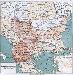 The Archbishopric of Ohrid, also known as the Bulgarian Archbishopric of Ohrid[1] (Bulgarian: Българска Охридска архиепископия, Macedonian: Охридска архиепископија), originally called Archbishopric of Justiniana Prima and all Bulgaria (Greek: ἀρχιεπίσκοπὴ τῆς Πρώτης Ἰουστινιανῆς καὶ πάσης Βουλγαρίας), was an autonomous Orthodox Church under the tutelage of the Patriarchate of Constantinople between 1019 and 1767. It was established following the Byzantine conquest of Bulgaria in 1018 by lowering the rank of the autocephalous Bulgarian Patriarchate due to its subjugation to Constantinople.