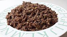 Bulgogi (불고기; /bʊlˈɡoʊɡiː/ bool-GOH-gee;[2] from Korean bul-gogi [pul.ɡo.ɡi]), literally "fire meat", is a gui (구이; Korean-style grilled or roasted dish) made of thin, marinated slices of beef or pork grilled on a barbecue or on a stove-top griddle. It is also often stir-fried in a pan in home cooking. Sirloin, rib eye or brisket are frequently used cuts of beef for the dish. The dish originated from northern areas of the Korean Peninsula, but is a very popular dish in South Korea where it can be found anywhere from upscale restaurants to local supermarkets as pan-ready kits.[3]