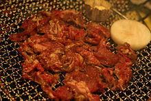 In the Standard Korean Language Dictionary published by the National Institute of Korean Language, the word is listed as meat such as beef that is thinly sliced, marinated, and grilled over the fire.[7] The word is also included in English-language dictionaries such as Merriam-Webster Dictionary and Oxford Dictionary of English.[8][2] Merriam-Webster dated the word's appearance in the American English lexicon at 1961.[8]