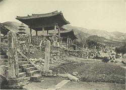 The temple was renovated during the Goryeo Dynasty and the early Joseon Dynasty. During the Imjin wars, the wooden buildings were burned to the ground. After 1604, reconstruction and expansion of Bulguksa started, followed by about 40 renovations until 1805.[8]