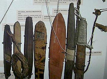 - ^ Bayley, Harold. The Lost Language of Symbolism: An Inquiry into the Origin of Certain Letters, Words, Names, Fairy-Tales, Folklore, and Mythologies Book Tree (2000). p. 86: "The bullroarer, used always as a sacred instrument, is still employed in New Mexico, the Malay Peninsula, Ceylon, New Zealand, Africa, and Australia, and under the name of Rhombus it figured prominently in the Mysteries of Ancient Greece."