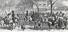 Sherman’s veterans appropriated the belittling title bummer as a point of personal pride. On May 24, 1865, Sherman’s Army paraded for six hours through the Pennsylvania Avenue in Washington, D,C., during the Grand Review of the Union Armies on May 23–24, 1865. Union General Horace Porter called foraging during the Sherman's raid a "novel feature of Sherman's command . . . organized for a very useful purpose from the adventurous spirits which are always found in the ranks."[5] Another Union General Henry Warner Slocum characterized the Sherman's March as "one great picnic from beginning to end” with "just enough fighting and danger of fighting to give zest to the experience."[6] Union General Edward Follansbee Noyes said that in "this rollicking picnic expedition there was just enough of fighting for variety, enough of hardship to give zest to the repose which followed it, and enough of ludicrous adventure to make its memory a constant source of gratification."[7]