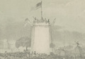 The directors laid the cornerstone on June 17, 1825. The Marquis de Lafayette (who was on a 14-month tour of the United States on the 50th anniversary of the War) performed the ceremony, Webster delivered the oration, and the Grand Master of the Grand Lodge of Massachusetts, Ancient Free and Accepted Masons, conducted the services. Rev. Joseph Thaxter, who was wounded in the battle, officiated as chaplain at the ceremony, offering a prayer in thanks for the colonists' victory.[8][9][10] More than 100,000 attended the event, including 190 veterans who had participated in the battle.[11]