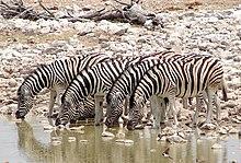 Burchell's zebra migrates the longest distance of any terrestrial animal in Africa, traveling 160 miles one way.[8] They migrate from the Chobe River in Namibia to Nxai Pan National Park in Botswana.[8] Their migration follows a straight north–south route almost entirely within the Kavango–Zambezi Transfrontier Conservation Area[8] (KAZA).