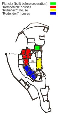 Started in 1470 by Philipp zu Eltz, the 10-story Greater Rodendorf House takes its name from the family's land holding in Lorraine. The oldest part is the flag hall with its late Gothic vaulted ceiling, which was probably originally a chapel. Construction was completed around 1520. The (so-called) Little Rodendorf house was finished in 1540, also in Late Gothic style. It contains the vaulted "banner-room".