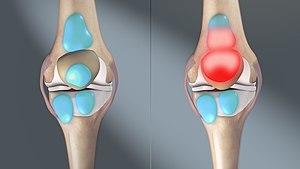 Bursitis is the inflammation of one or more bursae (fluid filled sacs) of synovial fluid in the body. They are lined with a synovial membrane that secretes a lubricating synovial fluid.[1] There are more than 150 bursae in the human body.[1] The bursae rest at the points where internal functionaries, such as muscles and tendons, slide across bone. Healthy bursae create a smooth, almost frictionless functional gliding surface making normal movement painless. When bursitis occurs, however, movement relying on the inflamed bursa becomes difficult and painful. Moreover, movement of tendons and muscles over the inflamed bursa aggravates its inflammation, perpetuating the problem. Muscle can also be stiffened.