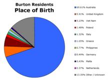 In 2001 45.56% of Burton residents were of Christian faith, primarily Catholic. 22.85% of people claimed to follow no religion, and 16.90% were Buddhist. Almost all dwellings in the suburb were Separate house with 99.36% of dwellings in this form. The suburb had an unemployment rate of 13.59%, which is greater than the state average. The Median age of residents was 27. The Median weekly individual income was $300–$399 and the median weekly household income was $700–$799.[6]