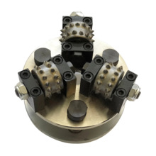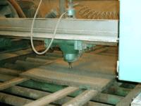 The bush hammer has since been modernized in the past years, making it easier for the users to perform tasks while still having intended impression the tool gives. These machines are built to give the impression that a bush hammer has been applied to the concrete. This allows contractors to work on a larger amount of the material without using individual hammers for the project. This saves time and labor costs for those working with the tool. There are angled points that rotate to help imitate this tool. See figure 3 and figure 4