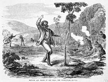 The earliest documented use of the term appears in a February 1805 issue of The Sydney Gazette, which reports that a cart had been stopped between Sydney and Hawkesbury by three men "whose appearance sanctioned the suspicion of their being bush-rangers".[3] John Bigge described bushranging in 1821 as "absconding in the woods and living upon plunder and the robbery of orchards." Charles Darwin likewise recorded in 1835 that a bushranger was "an open villain who subsists by highway robbery, and will sooner be killed than taken alive".[4]