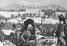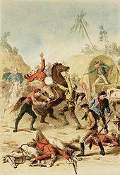 Donahue was the most notorious of the early New South Wales bushrangers, terrorising settlements outside Sydney from 1827 until he was fatally shot by a trooper in 1830.[3] That same year, west of the Blue Mountains, convict Ralph Entwistle sparked a bushranging insurgency known as the Bathurst Rebellion. He and his gang raided farms, liberating assigned convicts by force in the process, and within a month, his personal army numbered 80 men. Following gun battles with vigilante posses, mounted policemen and soldiers of the 39th and 57th Regiment of Foot, he and nine of his men were captured and executed.