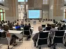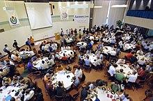 In the technical sense, a convention is a meeting of delegates or representatives.[1] The 1947 Newfoundland National Convention is a classic example of a state-sponsored political convention. More often, organizations made up of smaller units, chapters, or lodges, such as labor unions, honorary societies, and fraternities and sororities, meet as a whole in convention by sending delegates of the units to deliberate on the organization's common issues.[2] This also applies to a political convention, though in modern times the common issues are limited to selecting a party candidate or party chairman. In this technical sense, a congress, when it consists of representatives, is a convention. The British House of Commons is a convention, as are most other houses of a modern representative legislature. The National Convention or just "Convention" in France comprised the constitutional and legislative assembly which sat from September 20, 1792 to October 26, 1795. The governing bodies of religious groups may also be called conventions, such as the General Convention of the Episcopal Church USA and the Southern Baptist Convention.
