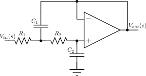 For the second-order Sallen–Key circuit shown to the right the transfer function is given by