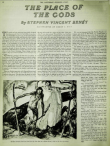 - Benét, Stephen Vincent (July 31, 1937). Henry C. Pitz (illus.). "THE PLACE OF THE GODS". Saturday Evening Post. 210 (5): 10–11, 59–60 (4p).