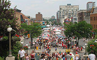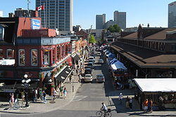 The ByWard Market (French: Marché By), is a retail and entertainment district in downtown Ottawa, Ontario, Canada. It is located east of the government and business district. The Market district includes the market buildings and open-air market along George, York, ByWard, and William street.