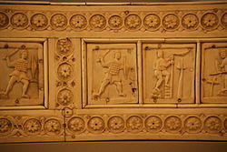 Cavalry formed about one-third of the units, but as a result of smaller units, about one-quarter of the Roman armies consisted of cavalry. About half the cavalry consisted of heavy cavalry (including the stablesiani). They were armed with spear or lance and sword and armored in mail. Some had bows, but they were meant for supporting the charge instead of independent skirmishing.[5]
