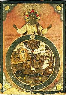 The first appearance of the term is in the treatise of a monk and priest, Georgios (AD 638–39), who mentions all the main variants of the "World Era" in his work.[4][5] Georgios argues that the main advantage of the World era is the common starting point of the astronomical lunar and solar cycles, and of the cycle of indictions, the usual dating system in Byzantium since the 6th century. He also regarded it as the most convenient for the Easter computus. Complex calculations of the 19-year lunar and 28-year solar cycles within this world era allowed scholars to discover the cosmic significance of certain historical dates, such as the birth or the crucifixion of Jesus.[6]
