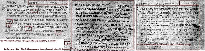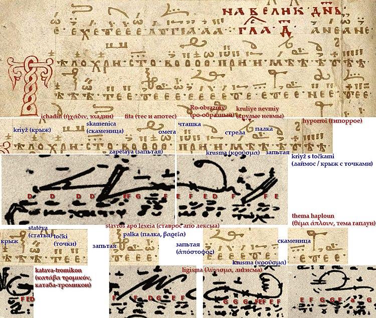 - "Moscow, Rossiysky Gosudarstvenny Archiv Drevnich Aktov (РГАДА), Fond 381 Ms. 152". Old Church Slavonic Sticherarion (Menaion from 1 September until 2 February) with znamennaya notation (12th century).