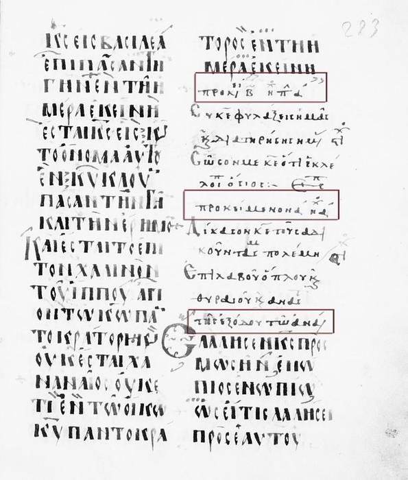 - "Sinai, Saint Catherine's Monastery, Ms. Gr. 1217". Greek Sticherarion (only Menaion) with Old Byzantine Coislin notation (11th–12th century).