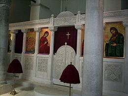 The term Byzantine music is sometimes associated with the medieval sacred chant of Christian Churches following the Constantinopolitan Rite. There is also an identification of "Byzantine music" with "Eastern Christian liturgical chant", which is due to certain monastic reforms, such as the Octoechos reform of the Quinisext Council (692) and the later reforms of the Stoudios Monastery under its abbots Sabas and Theodore.[3] The triodion created during the reform of Theodore was also soon translated into Slavonic, which required also the adaption of melodic models to the prosody of the language. Later, after the Patriarchate and Court had returned to Constantinople in 1261, the former cathedral rite was not continued, but replaced by a mixed rite, which used the Byzantine Round notation to integrate the former notations of the former chant books (Papadike). This notation had developed within the book sticherarion created by the Stoudios Monastery, but it was used for the books of the cathedral rites written in a period after the fourth crusade, when the cathedral rite was already abandoned at Constantinople. It is being discussed that in the Narthex of the Hagia Sophia an organ was placed for use in processions of the Emperor's entourage.[4]