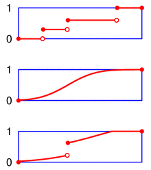 In mathematics, a càdlàg (French: "continue à droite, limite à gauche"), RCLL ("right continuous with left limits"), or corlol ("continuous on (the) right, limit on (the) left") function is a function defined on the real numbers (or a subset of them) that is everywhere right-continuous and has left limits everywhere. Càdlàg functions are important in the study of stochastic processes that admit (or even require) jumps, unlike Brownian motion, which has continuous sample paths. The collection of càdlàg functions on a given domain is known as Skorokhod space.
