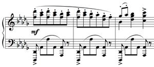 Chaminade's music has been described as tuneful, highly accessible and mildly chromatic, and it may be regarded as bearing the typical characteristics of late-Romantic French music.[1]