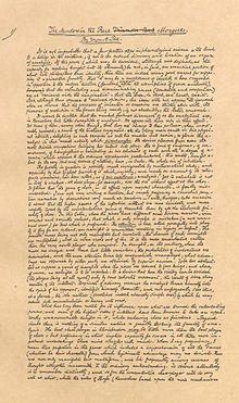 There is considerable controversy about the philosophical nature of Dupin's method. According to biographer Joseph Krutch, Dupin is portrayed as a dehumanized thinking machine, a man whose sole interest is in pure logic.[13] However, Krutch has been accused elsewhere of a "lazy reading" of Poe.[14] According to Krutch, Dupin's deductive prowess is first exhibited when he appears to read the narrator's mind by rationally tracing his train of thought for the previous fifteen minutes.[15][16] He employs what he terms "ratiocination". Dupin's method is to identify with the criminal and put himself in his mind. By knowing everything that the criminal knows, he can solve any crime. His attitude towards life seems to portray him as a snob who feels that due to his aptitude normal human interaction and relationships are beneath him.[17] In this method, he combines his scientific logic with artistic imagination.[18] As an observer, he pays special attention to what is unintended, such as hesitation, eagerness or a casual or inadvertent word.[19]