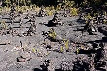 In Hawaii, cairns, called by the Hawaiian word ahu, are still being built today. Though in other cultures the cairns were typically used as trail markers and sometimes funerary sites, the ancient Hawaiians also used them as altars or security tower.[12] The Hawaiian people are still building these cairns today, using them as the focal points for ceremonies honoring their ancestors and spirituality.[13]