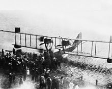 The overflight planted interest in local politicians, businessmen and community leaders towards aviation, particularly the establishment of an air station at North Bay. [N 4] In the summer of 1921, a Government of Canada Curtiss HS-2L flying boat, taking on exploration and aerial survey work, landed at North Bay, on Lake Nipissing.[10] The HS-2L landed on Lake Nipissing and Trout Lake (on the eastern periphery of North Bay) in 1922, for further aerial surveying as well as cargo and passenger transport.[11][12] These flights amplified this interest and a campaign to the federal government for an aerodrome commenced.[13]