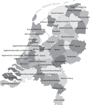 | Greater Amsterdam (Groot-Amsterdam) | Aalsmeer, Amstelveen, Amsterdam, Beemster, Diemen, Edam-Volendam, Haarlemmermeer, Landsmeer, Oostzaan, Ouder-Amstel, Purmerend, Uithoorn, Waterland |