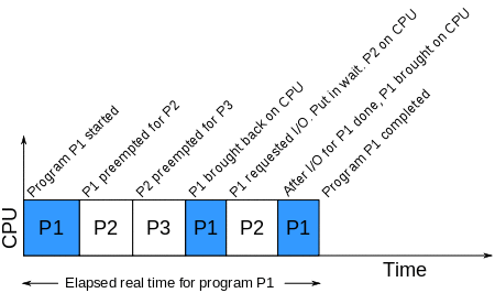 CPU time (or process time) is the amount of time for which a central processing unit (CPU) was used for processing instructions of a computer program or operating system, as opposed to elapsed time, which includes for example, waiting for input/output (I/O) operations or entering low-power (idle) mode. The CPU time is measured in clock ticks or seconds. Often, it is useful to measure CPU time as a percentage of the CPU's capacity, which is called the CPU usage.