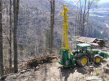 Cable logging, also referred to as skyline logging, is a logging method primarily used on the West Coast of North America with yarder, loaders, and grapple yarders, but also in Europe (Austria, Switzerland, Czech Republic, France, Italy).