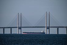 - Oresund Bridge, a combined two-track rail and four-lane road bridge with a main span of 490 metres (1,610 ft) and a total length of 7.85 kilometres (4.88 mi), crossing the Öresund between Malmö, Sweden, and the Danish Capital Region.