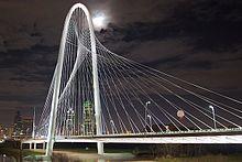 - Margaret Hunt Hill Bridge in Dallas, Texas, U.S.A., which opened in 2012 and spans the Trinity River. In 2012, the bridge received an Outstanding Civil Engineering Achievement Award from the Texas section of the American Society of Civil Engineers.[21][22] The bridge also received a 2012 European Convention for Constructional Steelwork Award For Steel Bridges.[23]