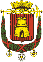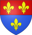 Under the Ancien Régime: Per fess, gules and azure, 3 fleurs de lys Or.