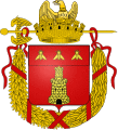 During the First French Empire: Gules, a single-towered castle Or, a chief of Good Imperial Cities (gules, 3 bees Or).