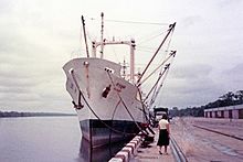 Since the 16th century, Calabar had been a recognized international seaport, shipping out goods such as palm oil.[8] During the era of the Atlantic slave trade, it became a major port in the transportation of African slaves and was named Calabar by the Spanish. By the 18th century, most slave ships that transported slaves from Calabar were Britain, with around 85% of these ships being owned by Bristol and Liverpool merchants.[9] Old Calabar (Duke Town) and Creek Town, 16 kilometres (10 mi) northeast, were crucial towns in the trade of slaves in that era.[2] The first British warship to sail as far as Duke Town, where she captured seven Spanish and Portuguese slave ships, may have been HMS Comus in 1815.[10]