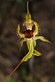 Caladenia, commonly known as spider orchids,[3] is a genus of 350 species of plants in the orchid family, Orchidaceae. Spider orchids are terrestrial herbs with a single hairy leaf and a hairy stem. The labellum is fringed or toothed in most species and there are small projections called calli on the labellum. The flowers have adaptations to attract particular species of insects for pollination. The genus is divided into three groups on the basis of flower shape, broadly, spider orchids, zebra orchids and cowslip orchids, although other common names are often used. Although they occur in other countries, most are Australian and 136 species occur in Western Australia, making it the most species-rich orchid genus in that state.