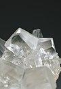 Over 800 forms of calcite crystals have been identified. Most common are scalenohedra, with faces in the hexagonal {2 1 1} directions (morphological unit cell) or {2 1 4} directions (structural unit cell); and rhombohedral, with faces in the {1 0 1} or {1 0 4} directions (the most common cleavage plane).[9] Habits include acute to obtuse rhombohedra, tabular forms, prisms, or various scalenohedra. Calcite exhibits several twinning types adding to the variety of observed forms. It may occur as fibrous, granular, lamellar, or compact. A fibrous, efflorescent form is known as lublinite.[10] Cleavage is usually in three directions parallel to the rhombohedron form. Its fracture is conchoidal, but difficult to obtain.