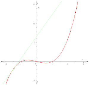 The slope of the tangent line to the squaring function at the point (3, 9) is 6, that is to say, it is going up six times as fast as it is going to the right. The limit process just described can be performed for any point in the domain of the squaring function. This defines the derivative function of the squaring function or just the derivative of the squaring function for short. A computation similar to the one above shows that the derivative of the squaring function is the doubling function.