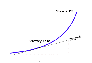 This gives an exact value for the slope of a straight line. If the graph of the function is not a straight line, however, then the change in y divided by the change in x varies. Derivatives give an exact meaning to the notion of change in output with respect to change in input. To be concrete, let f be a function, and fix a point a in the domain of f. (a, f(a)) is a point on the graph of the function. If h is a number close to zero, then a + h is a number close to a. Therefore, (a + h, f(a + h)) is close to (a, f(a)). The slope between these two points is