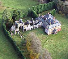 Much of the cloister buildings remain either incorporated into Calder Abbey House, now a largely early-nineteenth century structure that is still a private residence,[2] or in adjoining ruins, such as the chapter house. It is now a picturesque ruin, no doubt retained by early residents of the newly formed mansion as an ornamental feature. The Abbey and grounds are private, and not open to the public, and new trees obscure much of the view from the surrounding land.